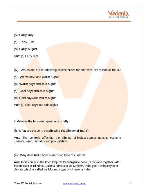 Ncert Solutions For Class 9 Social Science Contemporary India Chapter 4 Climate